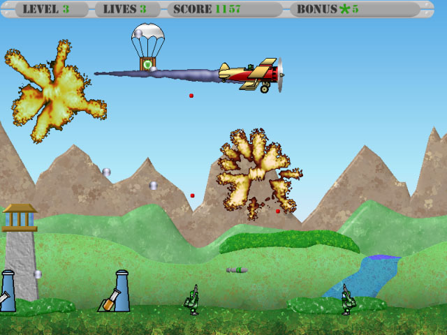 Máy bay của bạn được trang bị vũ khí chiến đấu và ném bom. Bạn đang được giao phó một nhiệm vụ khó khăn để loại bỏ tất cả các kẻ thù và quân xâm lược đất nước. Có nhiều loại máy bay trong trò chơi. Phi đội gồm máy bay, trực thăng, khí cầu chiến đấu và lực lượng bên địch sẽ tấn công bạn trong nhiệm vụ. Bên cạnh đó, tránh các cuộc tấn công của tòa tháp tuần tra đất đai và các ụ tên lửa, vũ khí đánh bom sẽ giúp chống lại. Bạn có thể có được vũ khí, đạn dược, bảo vệ, cuộc sống và điểm định kỳ. Tải về miễn phí trò chơi máy bay! Chúc may mắn trong một trận chiến!